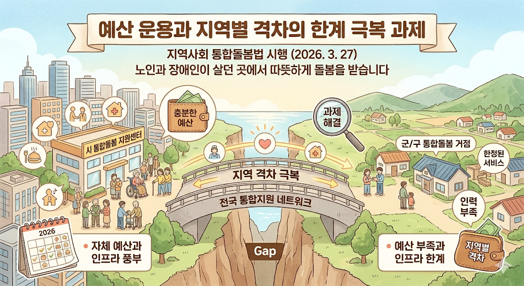 실제로 장기요양기관의 99.1%가 민간에 의존하고 있고, 국공립 기관이 전무한 지자체가 150여 곳에 달한다는 사실은 뼈아픈 현실이다. 지역 돌봄 서비스 확충 예산 529억 원이 편성되긴 했으나, 재정 자립도가 낮은 지방 소도시의 경우 국비 지원 외에 자체 예산을 투입할 여력이 부족하다. 이는 결국 '어느 지역에 사느냐'에 따라 돌봄의 질이 결정되는 복지 양극화 현상을 심화시킬 우려가 크다.