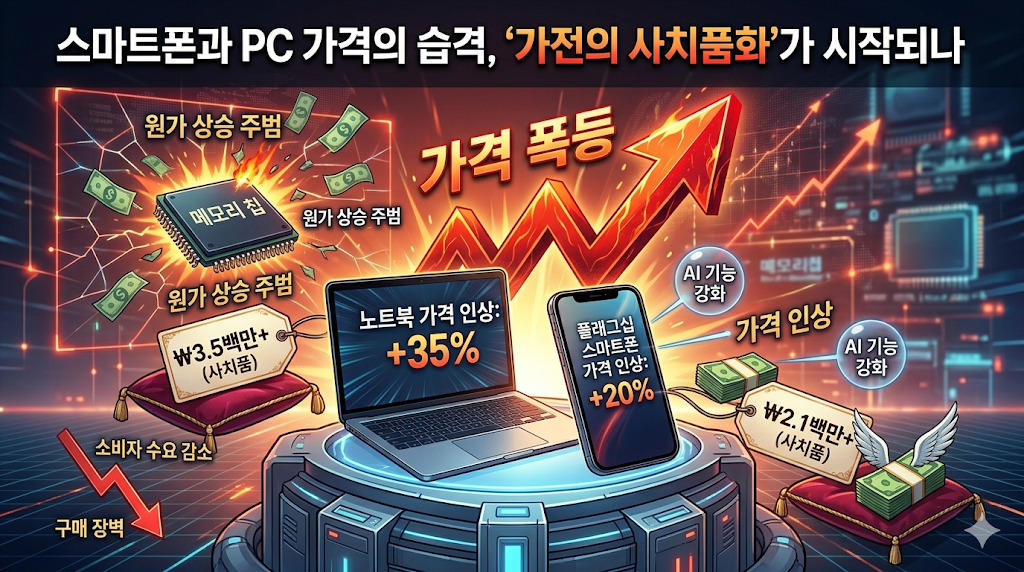 2026년 현재, 가전 매장을 방문한 소비자들은 경악을 금치 못하고 있다. 불과 1~2년 전만 해도 고성능 노트북의 기준점이었던 200만 원대의 벽이 허물어진 지 오래다. 이제는 350만 원을 훌쩍 넘는 제품들이 즐비하다. 이러한 현상의 중심에는 '칩플레이션(Chipplation)'이라는 신조어가 자리 잡고 있다. 반도체(Chip)와 인플레이션(Inflation)의 합성어인 이 용어는 단순히 부품 가격의 상승을 넘어 우리 삶의 필수품인 PC와 스마트폰 가격을 천정부지로 끌어올리는 주요인이 되었다. 특히 메모리 반도체의 핵심인 D램 가격이 1년 사이 95% 가까이 폭등하면서 정보기술(IT) 기기 시장은 그야말로 비상사태에 직면해 있다. 과거 2021년의 반도체 대란이 차량용 반도체의 공급 부족으로 인한 '지연'의 문제였다면, 지금의 칩플레이션은 인공지능(AI)이라는 거대한 파도가 집어삼킨 '원가 폭등'의 문제라는 점에서 그 궤를 달리한다.